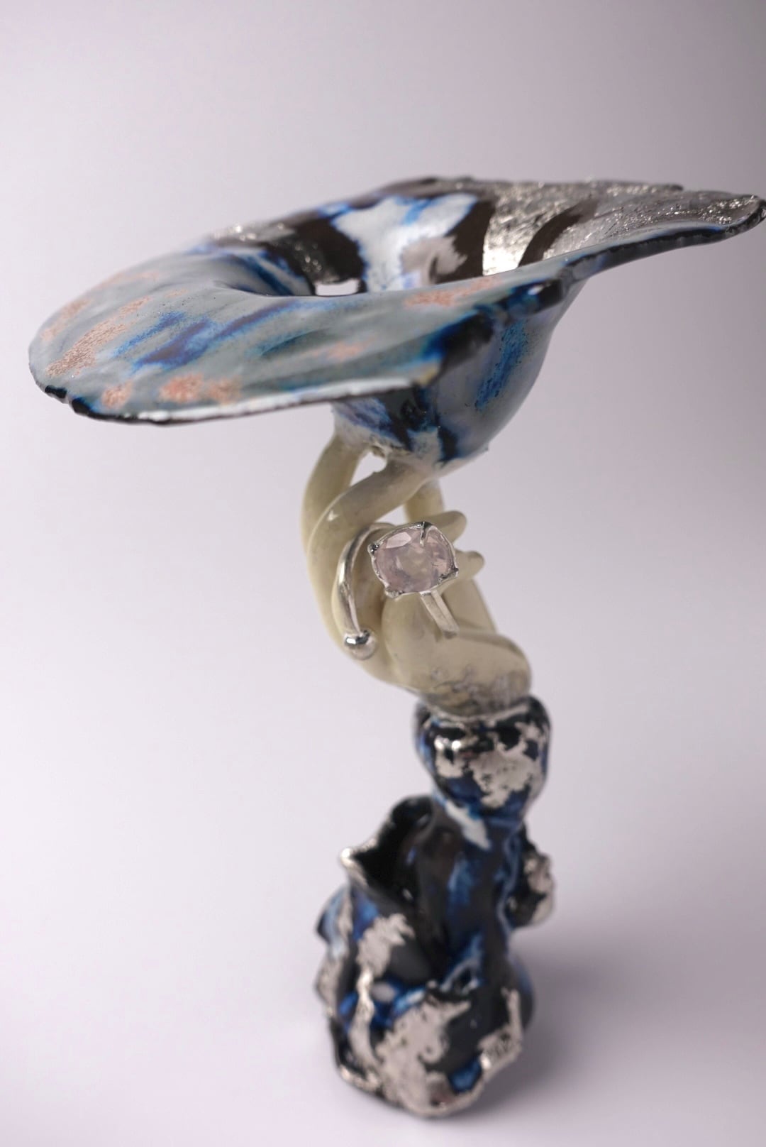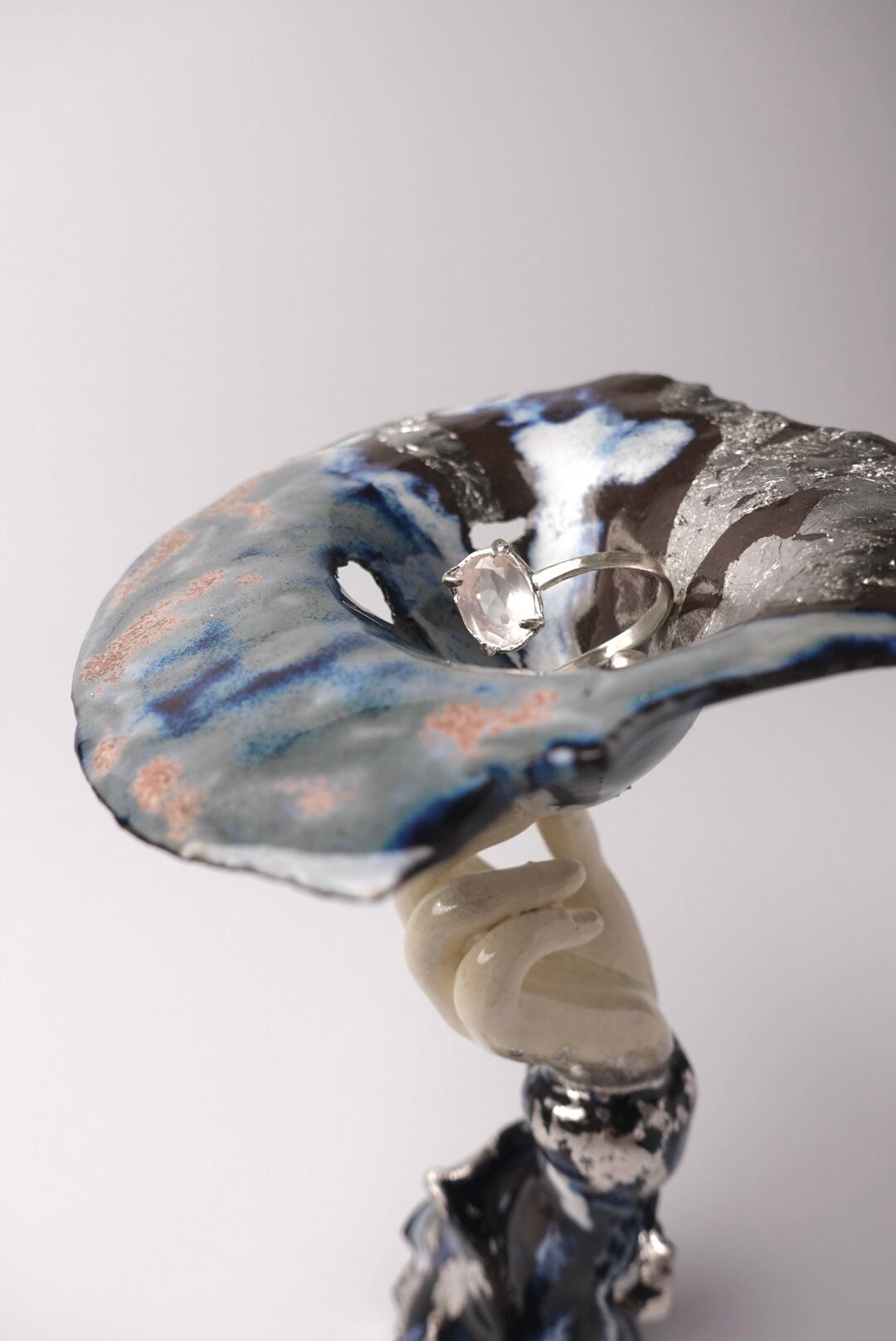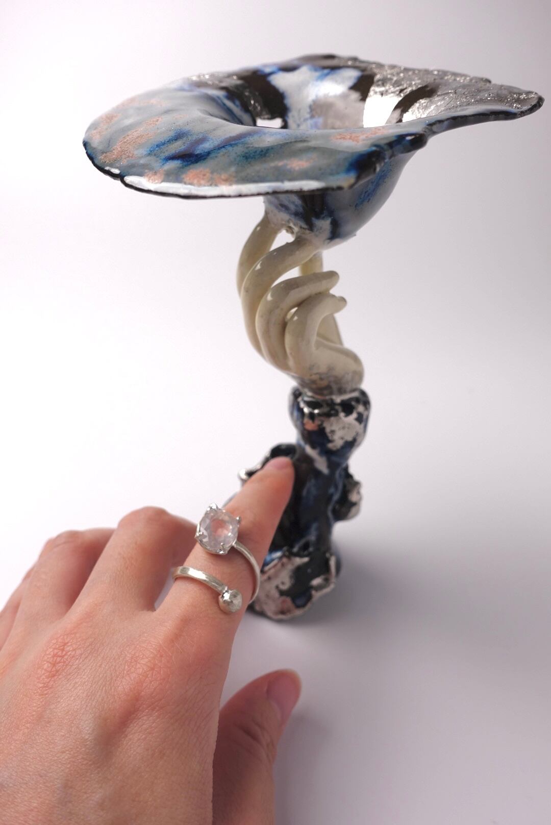 ・陶製ジュエリーコンポート(プラチナ箔を施しています)