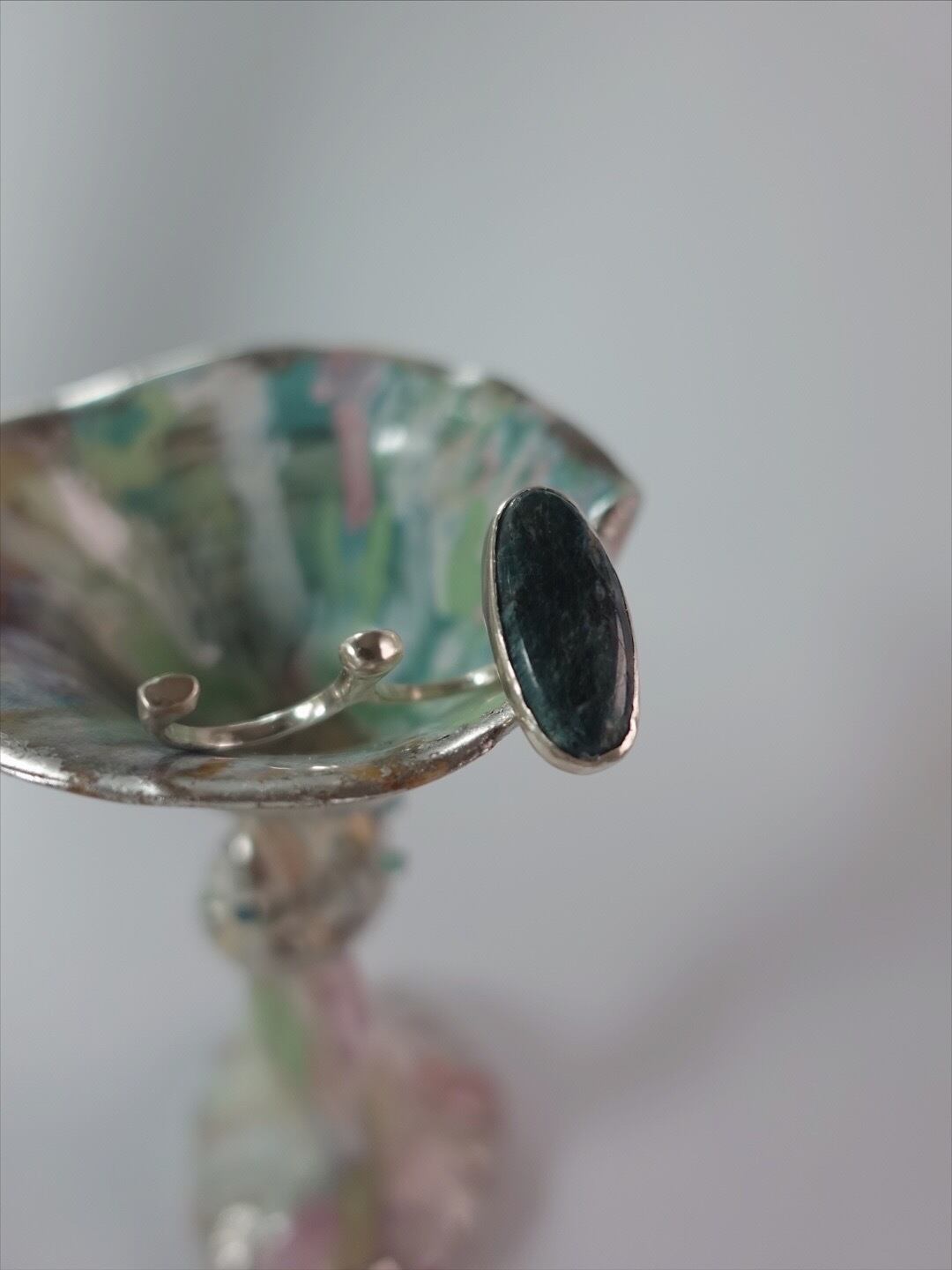 森の記憶を持つ瑞々しいモスアゲートのリングの安息地