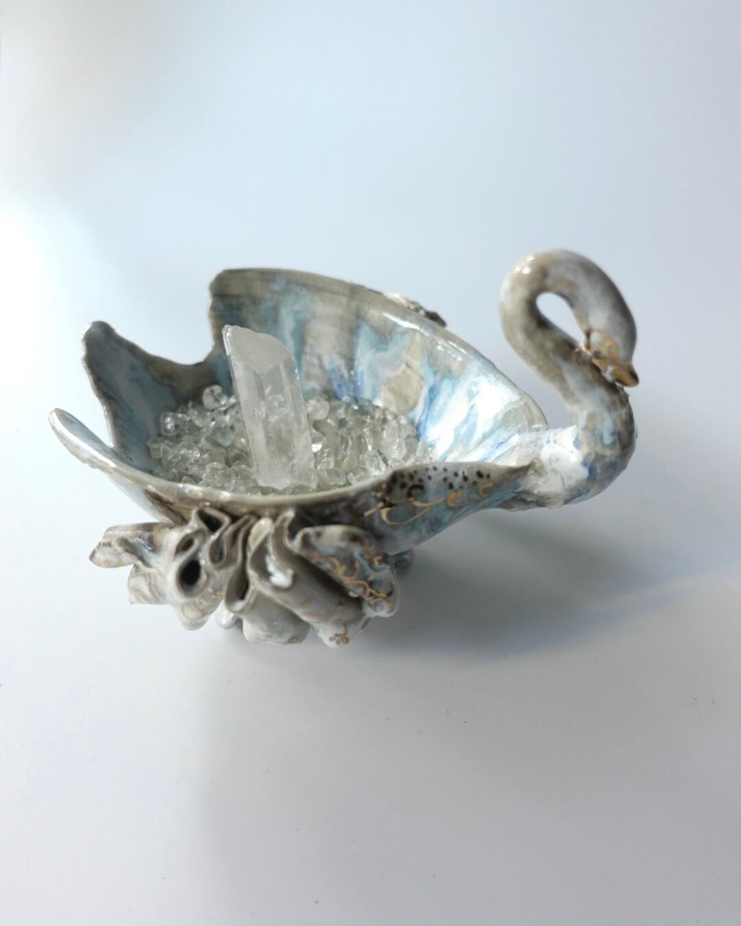 ・陶製ディフューザー(セラミック/金彩/淡水パール) W16×D14×H12cm