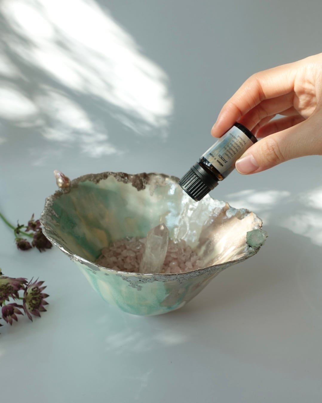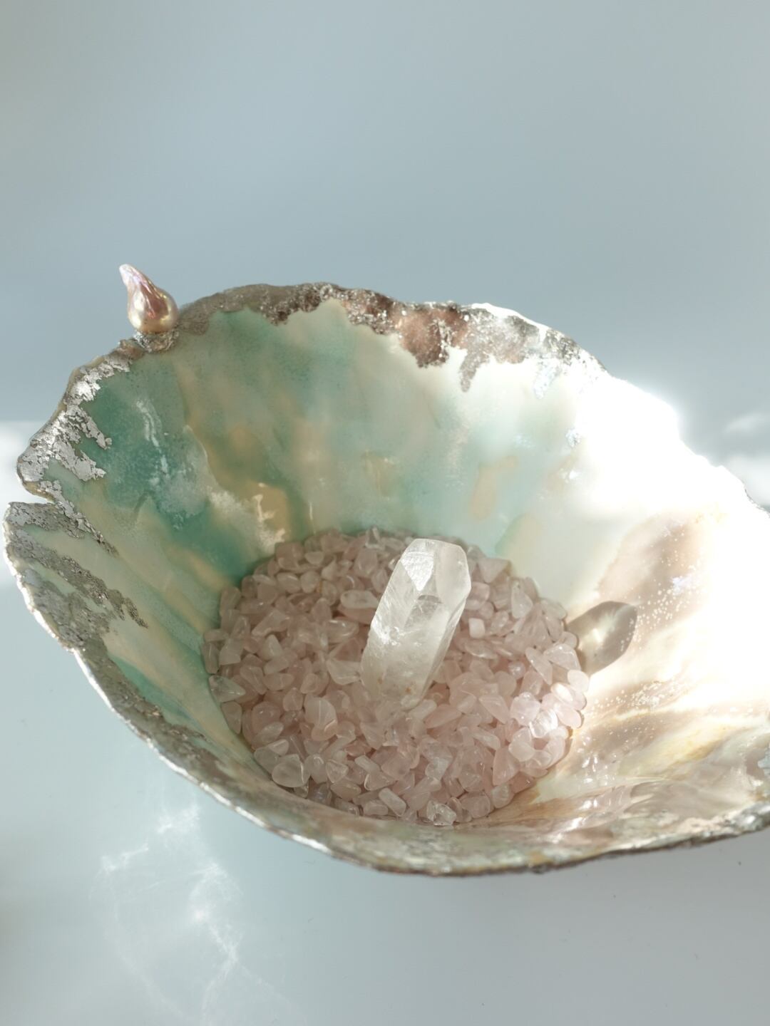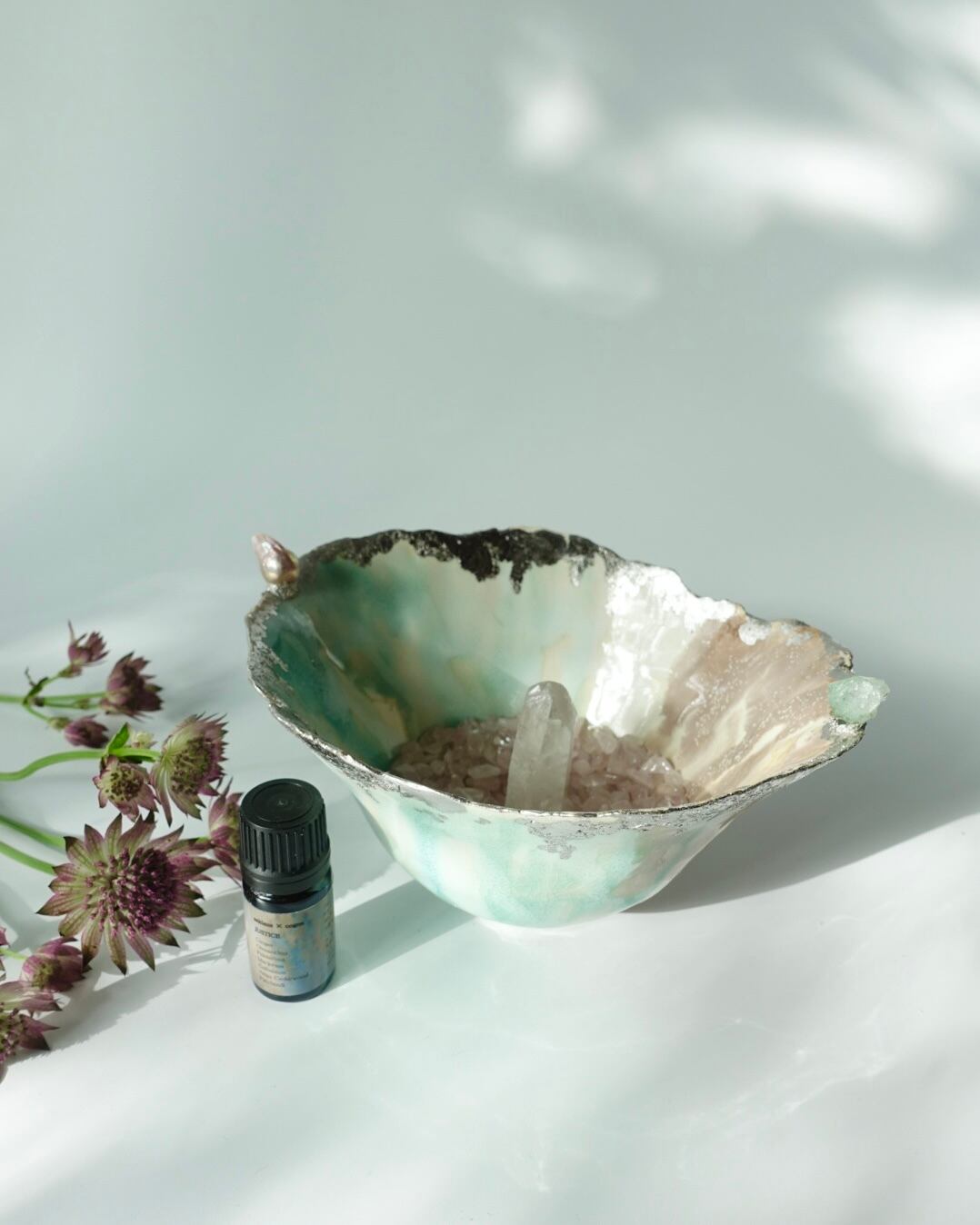 ピンクの淡水パールとグリーンのアポフィライトのアロマディフューザー