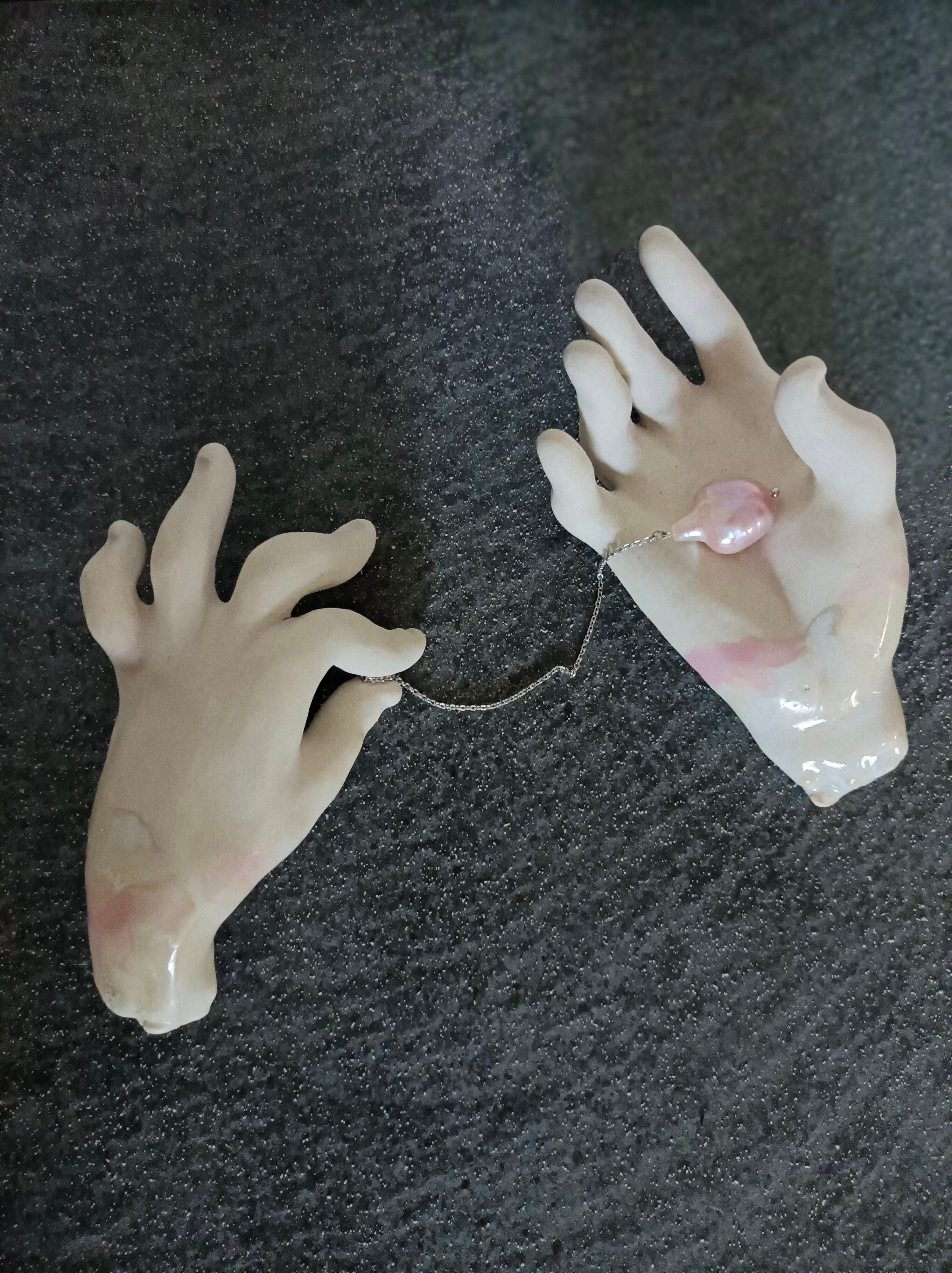 まるで絹の薄衣を纏うかのようなハンドオブジェです。